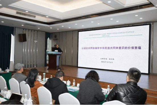 研讨会上,来自新疆师范大学、中央民族大学、贵州民族大学、贵州师范大学等国内60余所高校、科研机构的专家学者,共同围绕民族地区国家通用语言文字推广与铸牢中华民族共同体意识这一核心议题展开深入探讨,为民族地区国家通用语言文字推广与铸牢中华民族共同体意识的建设工作提供理论支撑和实践路径。孙向阳副校长在开幕式大会报告环节作了题为《以语言共同体铸牢中华民族共同体意识的价值意蕴》的主旨发言。他从语言共同体这一研究视角切入,分别从本体论、方法论、认识论、价值论等层面阐释了中华民族语言共同体的“四维一体”架构和丰富内涵及其价值指向。