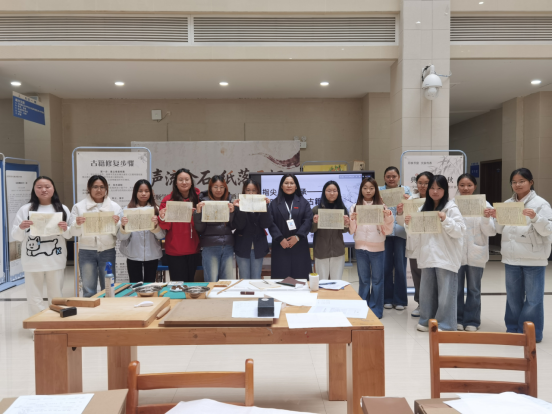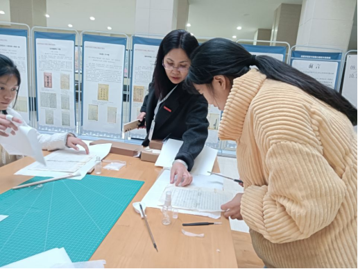 为弘扬中华优秀传统文化,推动古籍保护意识深入人心,2025年11月3日,安顺学院图书馆“声流金石 纸落云烟”2025年中华传统晒书系列活动之“与时光对话的古籍修复体验课”在华荣图书馆一楼大厅成功举行。活动分上、下午两场,为全校师生开启了一场沉浸式的历史文化之旅,让参与者在修复实践中深刻感悟中华文脉的传承与守护。