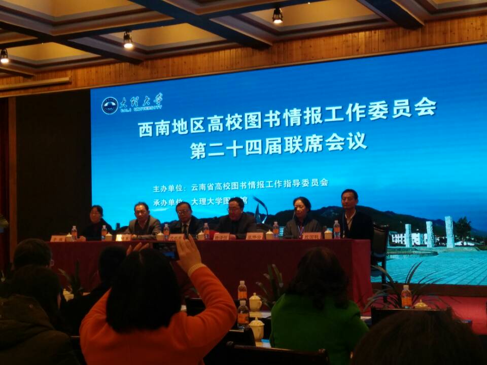 为促进西南地区高校图书馆发展,加快高校图书馆智慧化建设,发挥大学图书馆在学校“双一流”建设中的作用,进一步提升图书馆资源建设质量和成效,2019年12月3日至6日,西南地区高等学校图书情报工作委员会第二十四届联席会议在云南大理召开。会议由云南省高校图书情报工作指导委员会主办、大理大学图书馆承办,云南、贵州、四川、重庆、新疆等省地高校图书馆的馆长、馆员参会,我校图书馆馆长陈韶华、馆员袁名松参加了此次会议。