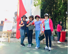 2021年5月13日,机关六工会积极组织图书馆、档案馆和博物馆教职工参加了学校主题为“牢记殷切嘱托·喜迎建党百年——重走长征路·迈进新征程”的“重走长征路,校园健步行”活动。老师们以饱满的热情跟随全校参与者领取小红旗后从校门口出发, 途经6个党史学习打卡点(“湘江战役”、“遵义会议”、“四渡赤水”、“嘉陵江战役”、“飞夺泸定桥”、“山城堡战役”),在每一个打卡点驻足学习展板上红军长征的故事后继续前行,所有参与的教职工最后都凭书签和小红旗在终点处兑换了有意义的纪念品。