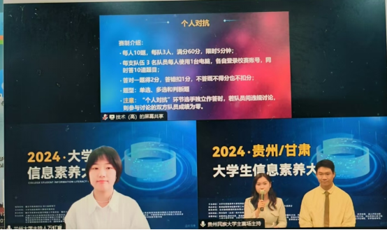 本次省级淘汰赛于2024年10月19日举行,采用线上限时答题的比赛形式,分为个人对抗和团队对抗两个环节,总用时20分钟。比赛内容涵盖了信息素养的多个方面,要求参赛选手具备扎实的理论基础和快速的应变能力。
