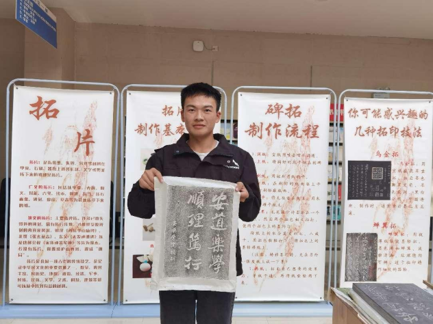 拓片制作是我国非物质文化遗产,为传承这一技艺,开展好非物质文化遗产进校园,助力乡村振兴,增强文化自信,丰富我校校园文化生活,2024年10月17日,安顺学院图书馆“走进古籍”系列之拓片制作体验活动在华荣图书馆一楼大厅举行。