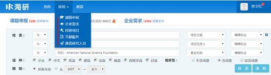 海研涵盖科研项目、课题申报、企业需求板块,海研支持文献服务。