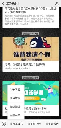 在【汇云书舍】微信公众号底部菜单栏,点击【APP下载】;