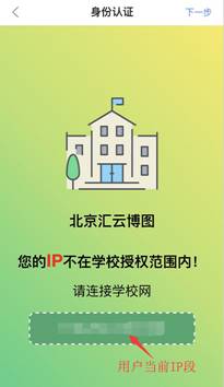 若为馆内网络IP,则点击右上角下一步进行注册;若不为馆内网络IP,则无法验证通过,需要用户连接馆内网络后再注册。