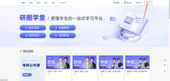 1. 在学校IP范围内,网址访问http://yantu.com.cn/