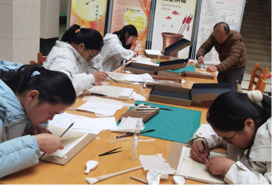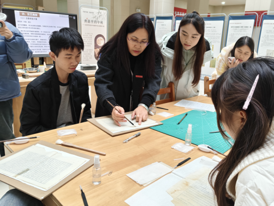 为弘扬中华优秀传统文化,推动古籍保护意识深入人心,2025年11月3日,安顺学院图书馆“声流金石 纸落云烟”2025年中华传统晒书系列活动之“与时光对话的古籍修复体验课”在华荣图书馆一楼大厅成功举行。活动分上、下午两场,为全校师生开启了一场沉浸式的历史文化之旅,让参与者在修复实践中深刻感悟中华文脉的传承与守护。