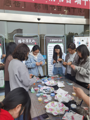 3.彩绳绕腕纳吉瑞:五彩绳编织台前,参与者兴致盎然。红、黄、蓝、绿、黑等各色彩线在指尖穿梭缠绕,编织成蕴含吉祥祝福的五彩绳。大家发挥自己的想象力编织了自己喜欢的手绳样式然后系于腕间,寄托了对健康平安、诸事顺遂的美好祈愿。