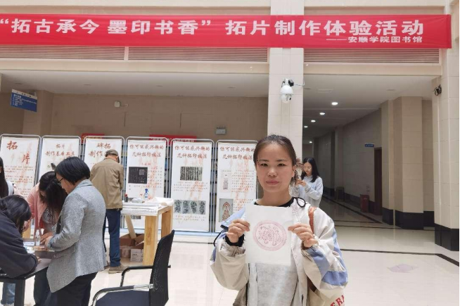 活动由安顺学院图书馆古籍特藏部工作人员组织,并为活动参与者讲解、指导拓片制作。活动特邀安顺学院博物馆王楠老师为活动参与者进行讲解、指导。