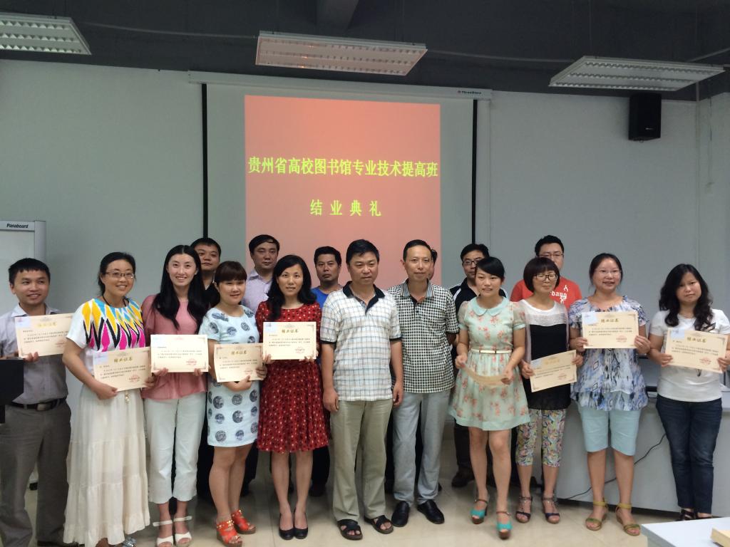按照贵州省高校图工委2014年工作安排,安顺学院图书馆选派了罗玉花、罗展清、付璇、周理、袁名松5名业务骨干于7月3日至8日在贵州大学参加了 “贵州省高校图书馆专业技术提高班” 的培训学习。全省各高校图书馆共有49名业务骨干参加了此次培训。系统学习了图书馆信息资源体系建设、数字图书馆技术应用与趋势以及图书情报专业科学研究方法论等理论知识,贵州大学与贵州师范大学等高校图书馆馆长对学员进行了专题辅导,培训结束后全体学员参观了贵州大学新馆。