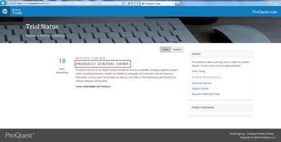 试用产品:ProQuest Central China(PQC外文学术期刊资源库)
