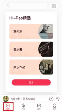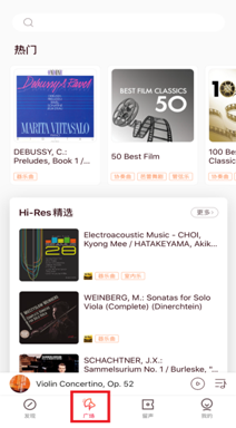 1)登录库客音乐APP后,进入发现页面或滑动至广场页面都可切换到Hi-Res模块,图1、图2;